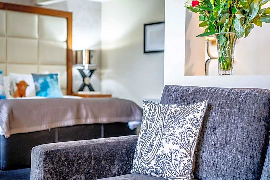 The suite is the biggest room at the property. It comes with blackout curtains, large bathroom with bath and separate rainfall shower, plus plenty of space to lounge. Nespresso coffee machine, tea, milk and water.